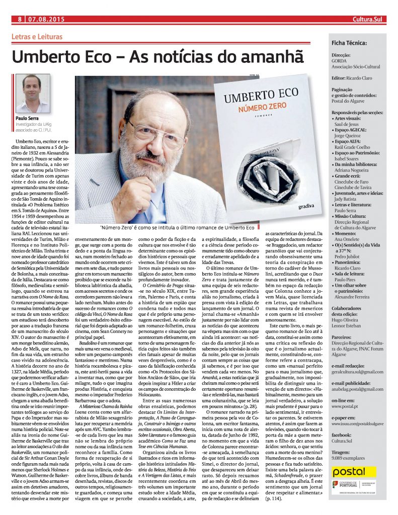 Umberto Eco, escritor e erudito italiano, nasceu a 5 de Janeiro de...