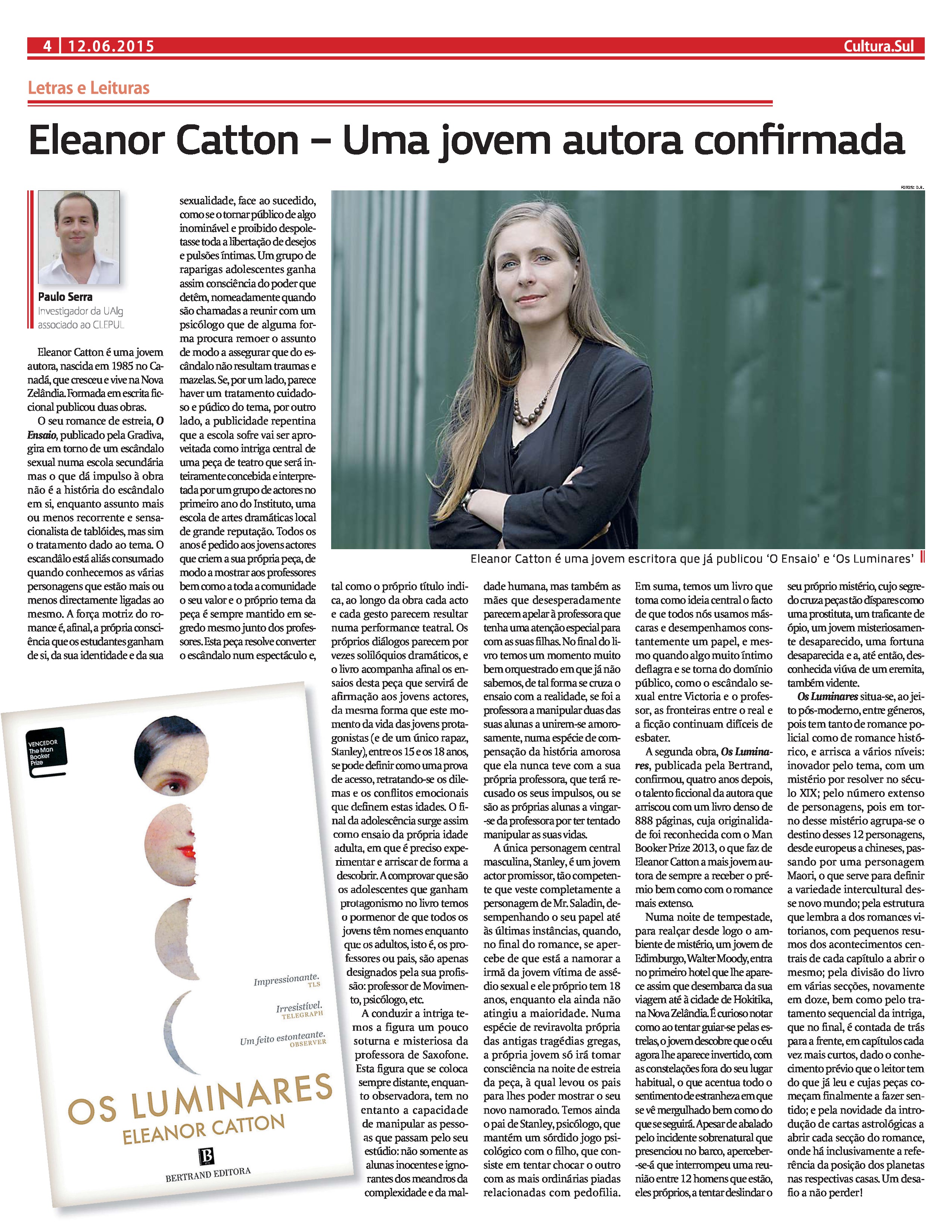 Eleanor Catton é uma jovem autora, nascida em 1985 no Canadá, que cresceu e vive na Nova Zelândia. Formada em escrita ficcional publicou duas obras.